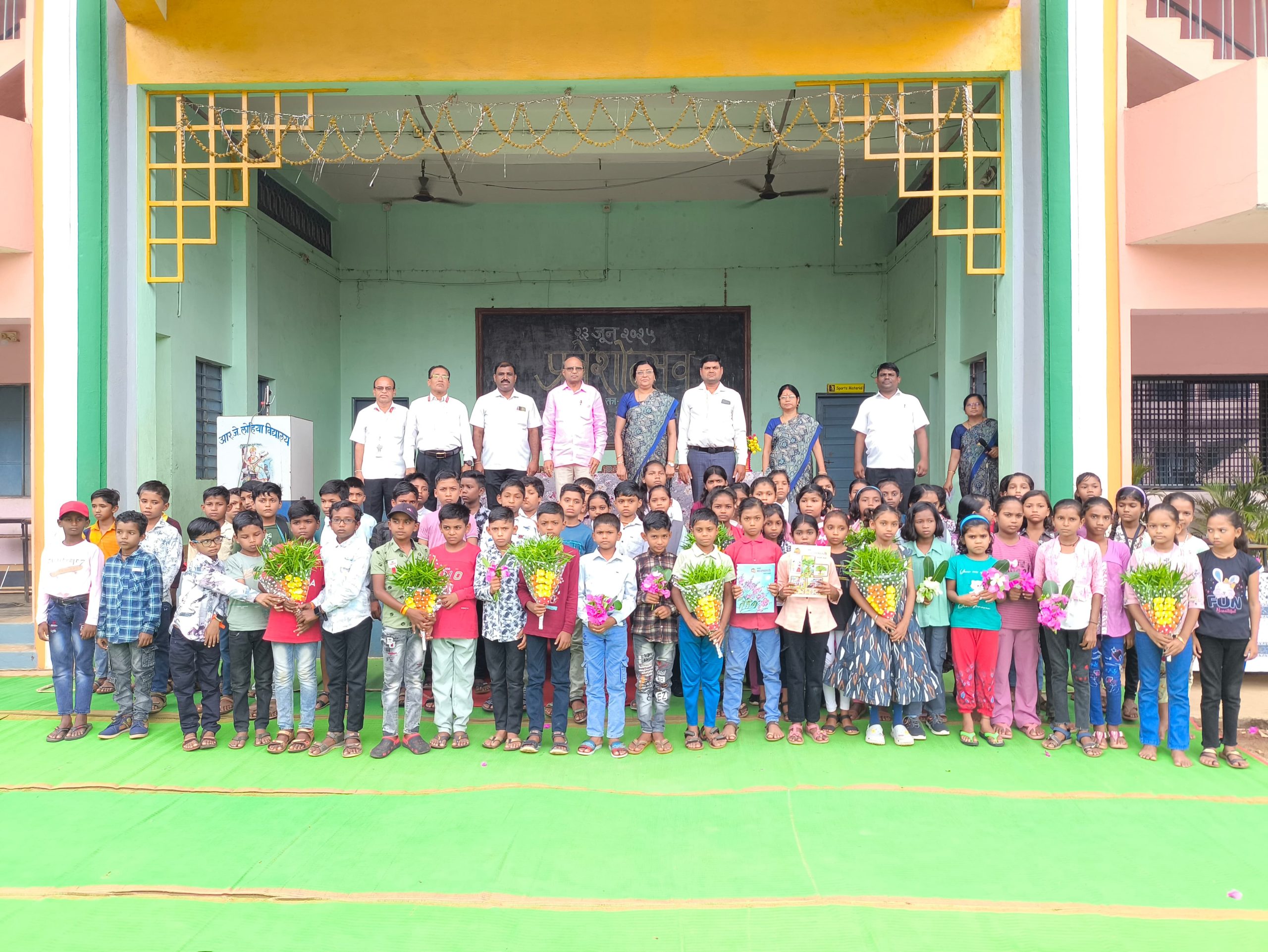 तसेच सर्व विद्यार्थ्यांना मिठाई देण्यात आली.  कार्यक्रमाचे अध्यक्ष यांनी विद्यार्थ्यांना मार्गदर्शन करुन शुभेच्छा दिल्या.यावेळी विद्यालयातील शिक्षक-शिक्षकेत्तर कर्मचारी तसेच विद्यार्थी मोठ्या संख्येने उपस्थित होते.कार्यक्रमाचे सूत्रसंचालन स . शिक्षिका यु. बी. डोये  यांनी केले तर आभार  स. शिक्षक टी. बी. सातकर यांनी मानले.